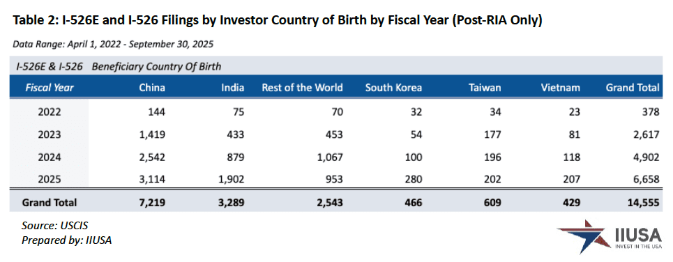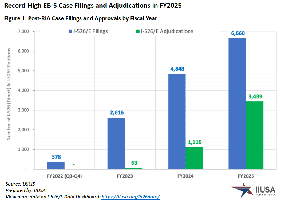 Dữ liệu đơn I-526E FY2025 cho thấy một xu hướng rất rõ ràng: