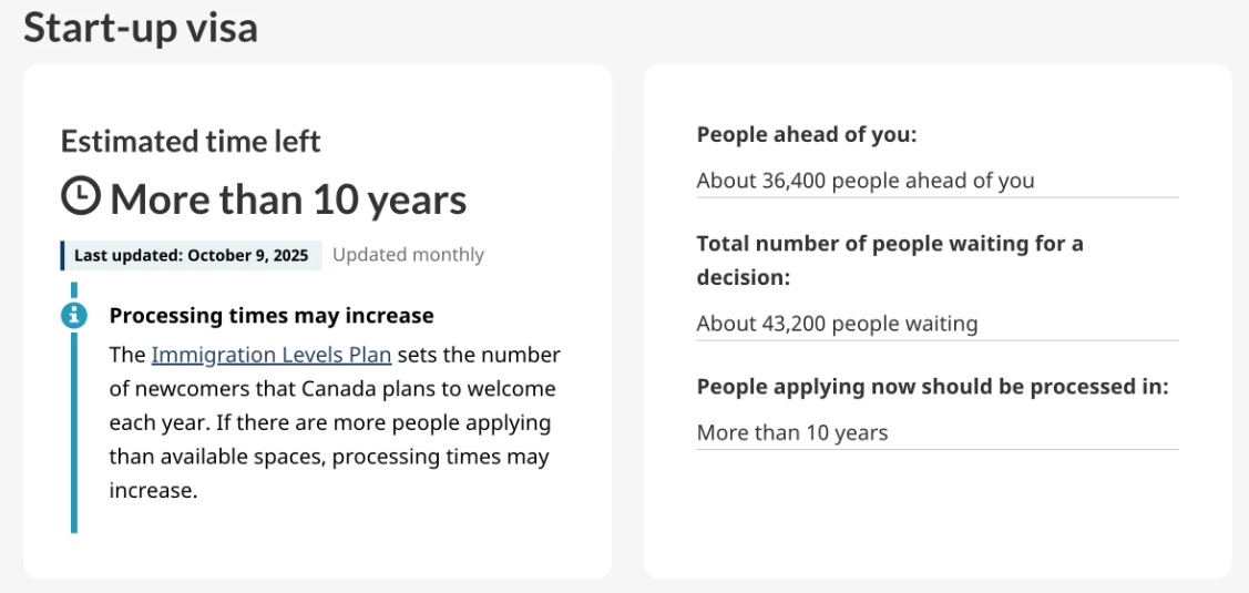 Trước đó, chương trình Start-up Visa đã nhận nhiều chỉ trích trong năm 2025 do thời gian xử lý quá dài. Theo công cụ ước tính thời gian xử lý được IRCC công bố gần đây, một số doanh nhân có thể phải chờ đến 10 năm để nhận thường trú nhân Canada theo diện SUV.