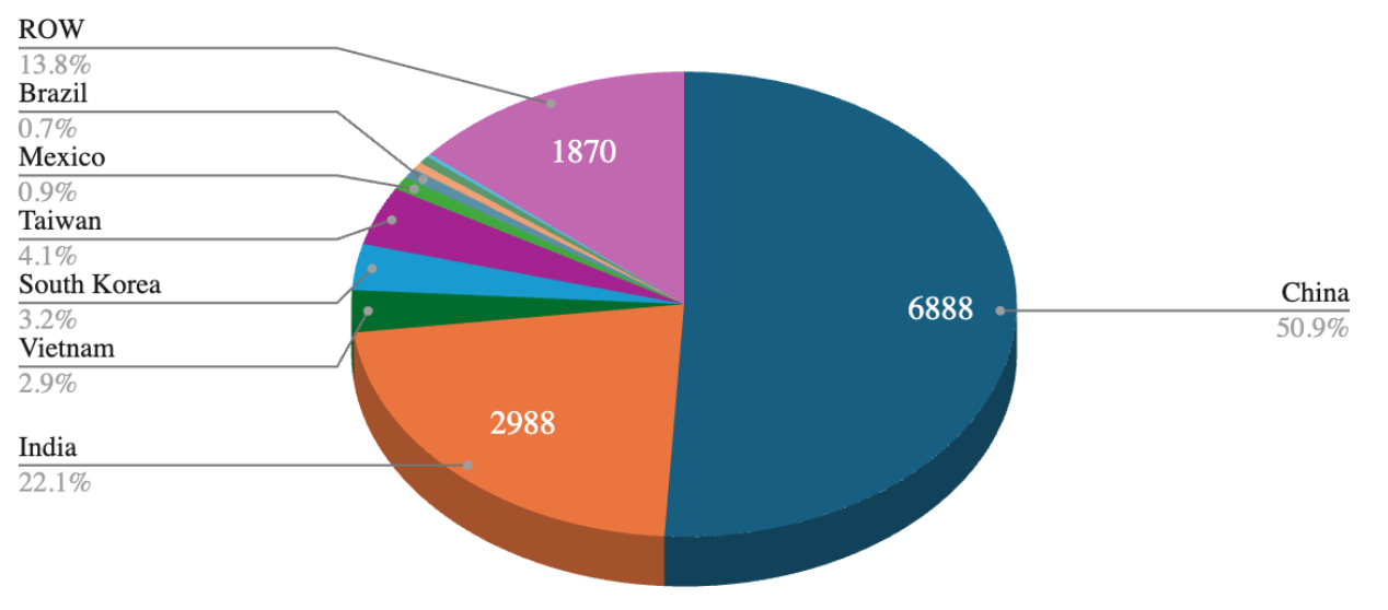Ấn Độ chiếm khoảng 22%.