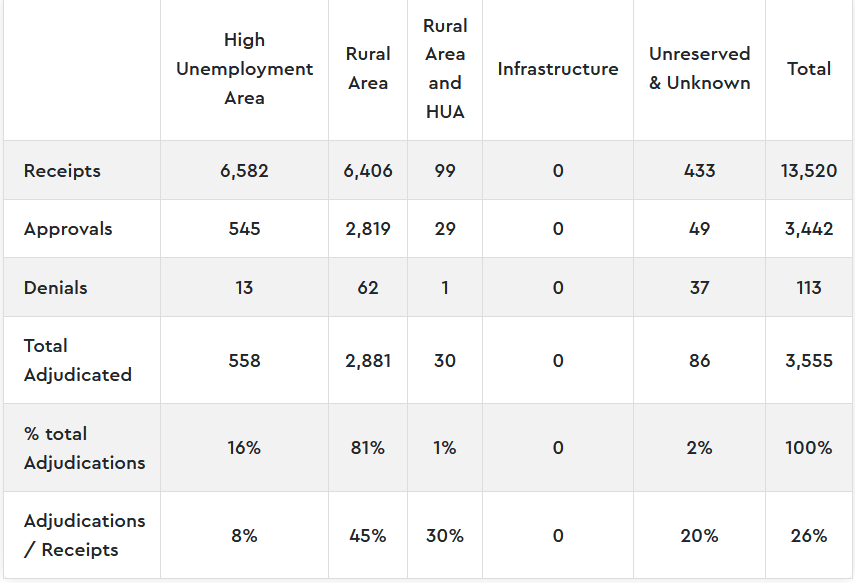 Tính đến tháng 7/2025, 81% tổng số quyết định liên quan I-526/I-526E thuộc về các hồ sơ dự án nông thôn.