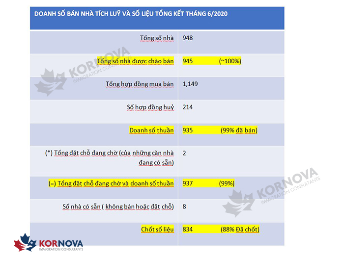 Tổng doanh số dự án tính đến 28/06/2020:
