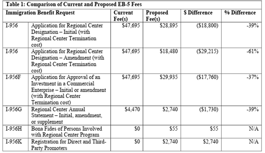 Bộ An ninh Nội địa Hoa Kỳ (DHS) vừa công bố đề xuất giảm phần lớn các khoản phí hiện hành mà USCIS đang thu đối với nhà đầu tư EB-5 và các Trung tâm Vùng, đồng thời giới thiệu một số loại đơn và khoản phí mới.
