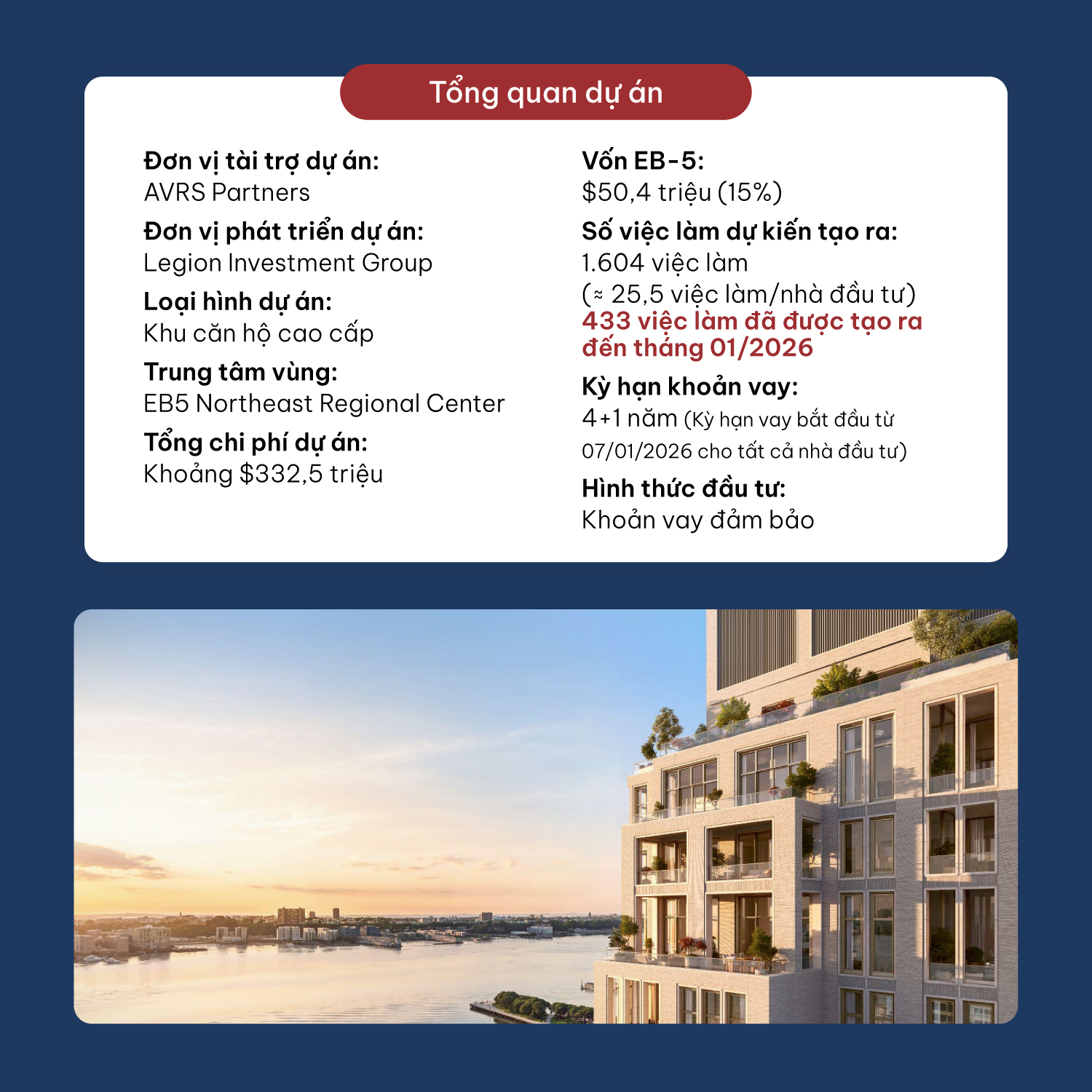 Kornova xin gửi đến các Anh/Chị cập nhật tiến độ bán hàng dự kiến dự án 550 West Chelsea Residences. Trước đó dự án đã nhận được phê duyệt I-956F vào tháng 1/2026 và kỳ hạn đầu tư của vốn vay EB-5 chính thức bắt đầu từ ngày 07/01/2026.