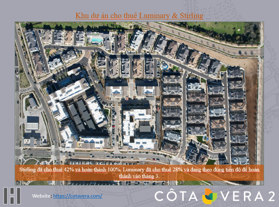 - Các khu dự án cho thuê Artisan, Luminary và Stirling đã mở cửa hoạt động.