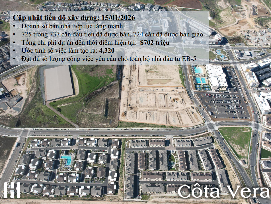 Cota Vera 1 và 2 là dự án khu đô thị quy hoạch nằm ở thành phố Chula Vista, thuộc khu vực Otay Ranch ở San Diego, California. Đây là các dự án EB-5 thuộc một trong những cộng đồng quy hoạch dân cư lớn và thành công nhất tại Mỹ. Kornova xin gửi đến quý Anh/Chị các cập nhật mới nhất về dự án Cota Vera 1 và Cota Vera 2 đến ngày 15 tháng 1 năm 2026.
