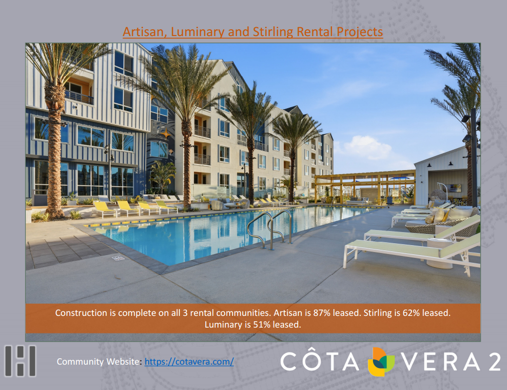 - Các khu dự án cho thuê Artisan, Luminary và Stirling đã hoàn thiện và đi vào hoạt động. Tỷ lệ cho thuê của Artisan, Stirling và Luminary lần lượt là 87%, 62% và 51%.