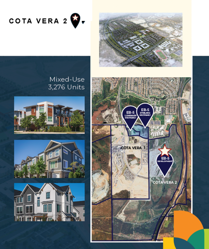 Khu đô thị COTA VERA 2 có tổng giá trị dự án là 779 triệu USD với vốn chủ đầu tư chiếm tỷ trọng 40% và vốn vay EB-5 chiếm 32% (249,6 triệu USD). Dự án đã có đủ nguồn tài chính, vốn vay EB-5 sẽ dùng để thay thế các khoản vay bắc cầu của chủ đầu tư HomeFed, không yêu cầu mức huy động tối thiểu. Dự án đã khởi công xây dựng từ quý 3 năm 2023, dự kiến hoàn thành toàn bộ vào năm 2030.