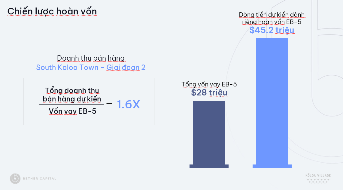 - Vốn vay EB-5 giữ vị trí ưu tiên hoàn trả đầu tiên trên tài sản đảm bảo.