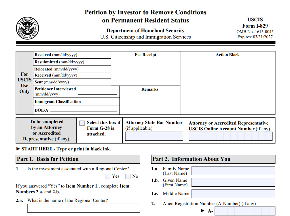 Mẫu đơn I-829 và ý nghĩa đối với nhà đầu tư EB-5
