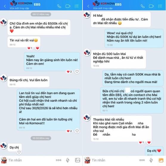 Những ngày cuối năm 2025, Kornova liên tiêp nhận thêm những tin vui từ các anh chị khách hàng với 2 gia đình nhận hoàn vốn với dự án Escaya và 1 gia đình nhận phê duyệt I-526E với dự án Cota Vera. Cả hai dự án Escaya và Cota Vera đều là các dự án EB-5 thành công của Tập đoàn HomeFed.